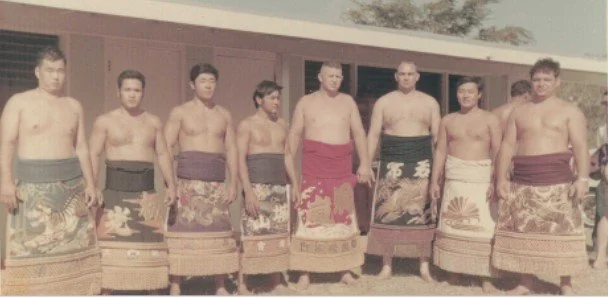 Ernie was stationed in the Bay Area in 1969. In 1971 he took his family to Hawaii due to professional sumo having a jungyo–one of the few family vacations they ever took. After being stationed for a few years in California, Ernie headed back to Hawaii. “I came back in ‘72 and there was another jungyo event and I wrestled. John [Jacques] came up and asked me how I did it. I asked him if he needed a belt. He was a collegiate wrestler and he was playing rugby at the time. I told him who to talk to and see. And he didn't follow up. The professional wrestlers came back in 1974 and held another jungyo. I was part of the amateur wrestling exhibition and John saw me again. He told me he wanted to be a sumo wrestler so I told him to come down and we will fix you up with a belt. In Hawaii we did everything like they do in Japan as far as the mawashi goes and John was a little shy. There were kids from a local high school and they were in swimming trunks and John was like ‘can I do that?’ and we told him yea so he ran out to his car and got some swim trunks. So he put ‘em on, we put a belt on him and he became a sumo wrestler.”